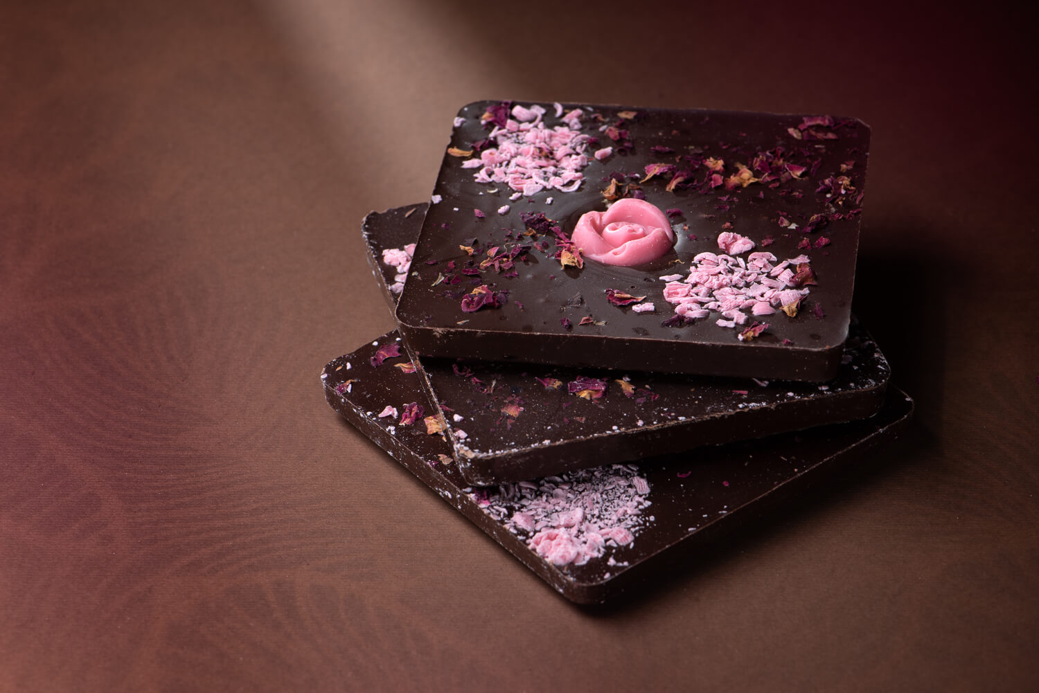 Oryginalna gorzka czekolada należąca do grupy czekolad kuwertur, zawierających większą ilość masła kakaowego niż pozostałe. Smak czekolady wzbogacają płatki suszonej róży.